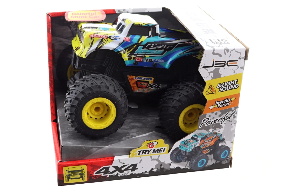 Hračka je vyrobená z odolného plastu a dodáva sa v otvorenej krabici, takže farbu a detaily vidíte hneď. Napájanie zabezpečujú 3× AG13 batérie, ktoré sú už v balení, takže auto je pripravené na jazdu ihneď po rozbalení.