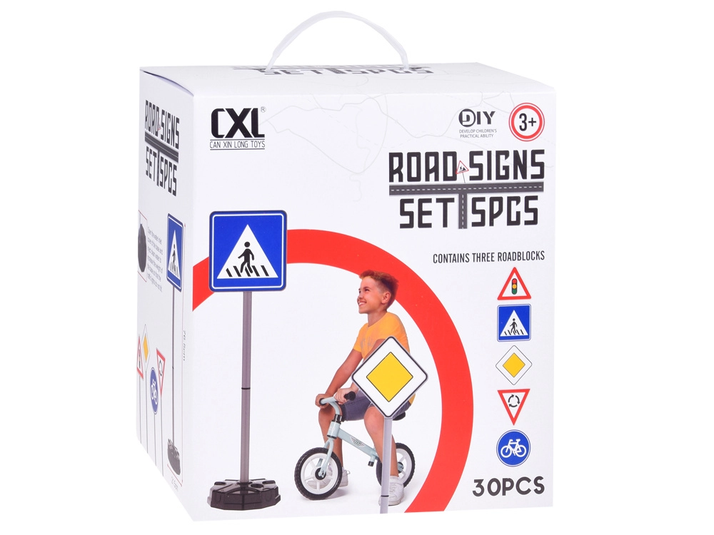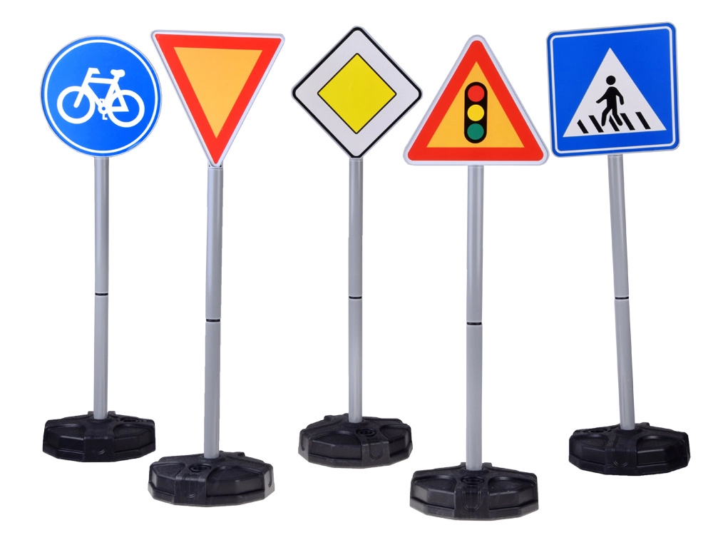 - 5 figúrok dopravných značiek (semafor, priechod pre chodcov, hlavná cesta, kruhový objazd, cyklotrasa)