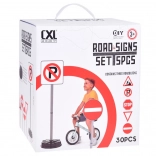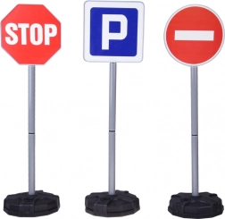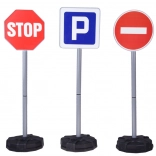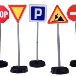 Tento interaktívny set obsahuje 5 najobľúbenejších dopravných značiek: práce na ceste, daj prednosť v jazde, STOP, parkovisko a zákaz vjazdu. Zostavenie je jednoduché – každý stojan sa skladá z podstavca, rúrok a konektorov. Základne možno naplniť vodou alebo pieskom pre maximálnu stabilitu aj pri živej hre.
