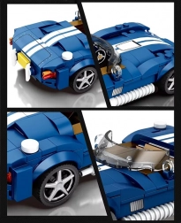 Modré športové auto v nadčasovom štýle roadsteru poteší milovníkov klasiky aj technických stavebníc. Nízka, pretiahnutá karoséria so zaoblenou prednou časťou, otvorená kabína a výrazné blatníky dodávajú modelu autentický vzhľad. Vďaka 312 dielom postavíte efektný a stabilný model, ktorý vynikne na poličke aj v kolekcii.