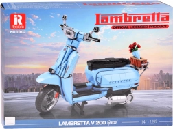 Postavte si ikonický taliansky skúter LAMBRETTA V200 Special v elegantnej svetlomodrej. Licencovaná stavebnica s 1169 dielikmi nadchne zberateľov aj fanúšikov dizajnu. Ponúka verné detaily, stabilný stojan, otvárateľné prvky a štýlový zadný košík s ružami na atraktívne vystavenie.