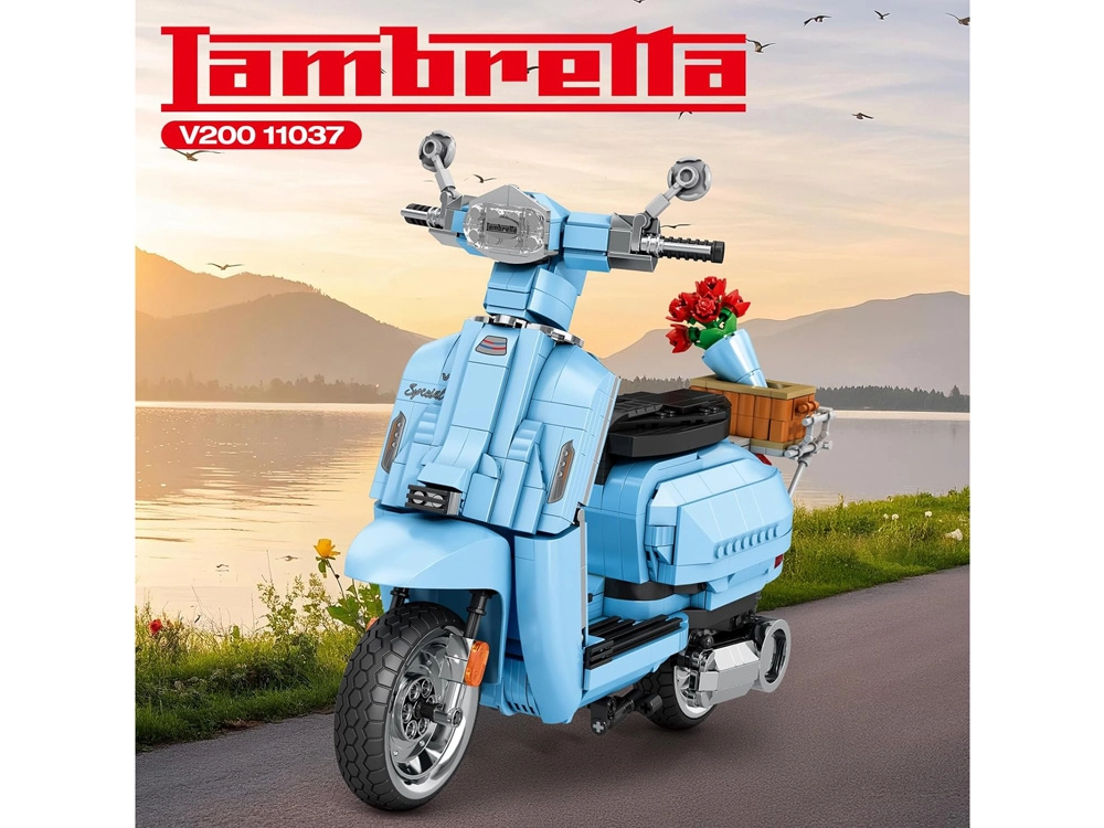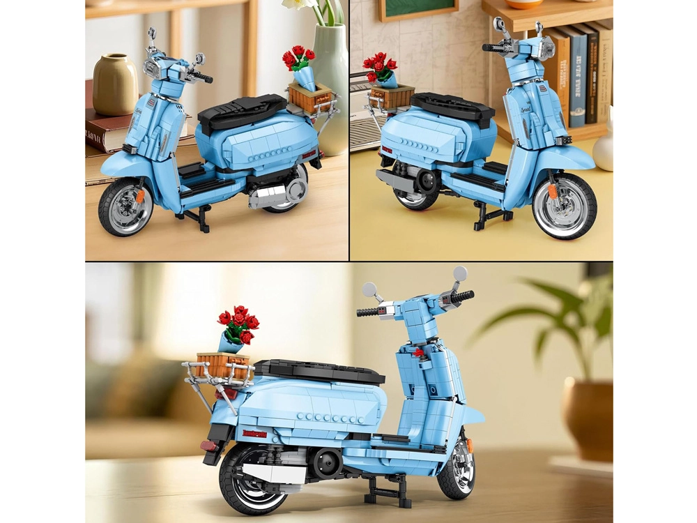 Stavebnica je premyslene rozdelená do sáčkov a doplnená nálepkami s detailmi, takže stavba je prehľadná a zábavná. Po dokončení modelu oceníte pevnú konštrukciu, funkčný stojanček a autentické proporcie legendárneho skútra.