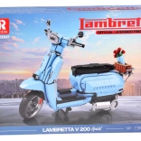 Tento licencovaný model LAMBRETTA V200 Special prináša šarm klasického talianskeho dizajnu do vašej zbierky. Svetlomodré prevedenie s čiernym sedlom, realistické ovládače, zrkadlá, svetlomet a zadný nosič s košíkom vytvárajú pôsobivú dekoráciu aj skvelý darček pre tínedžerov a dospelých fanúšikov motorkárskej histórie.