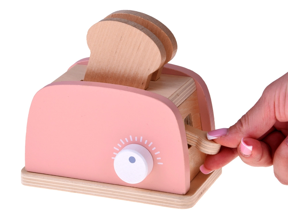 Tosty zasunúť, páku stlačiť – a hurá, po chvíli vyskočia! Otočný volič pridáva pocit skutočného nastavenia. Skvelé na hranie raňajok a rozvoj jemnej motoriky.