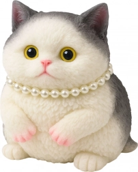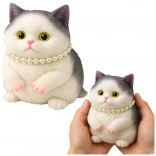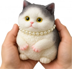 Roztomilé bielo-sivé mačiatko s perlovým náhrdelníkom je mäkký senzorický antistresový gniotek z elastického silikónu. Má príjemnú, srsť pripomínajúcu textúru, skvele sa hodí na mačkanie, uvoľnenie stresu a ako štýlová dekorácia na stôl či policu.
