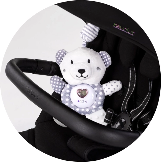 Hľadáte nežného parťáka, ktorý vaše bábätko zabaví a zároveň upokojí? Plyšový medvedík CHIPOLINO Teddy Bear kombinuje mäkké materiály, príjemné melódie a jemné svetlo, aby vytvoril útulné prostredie na odpočinok aj hranie. Vďaka praktickému klipu ho ľahko pripevníte na kočík, autosedačku či postieľku.