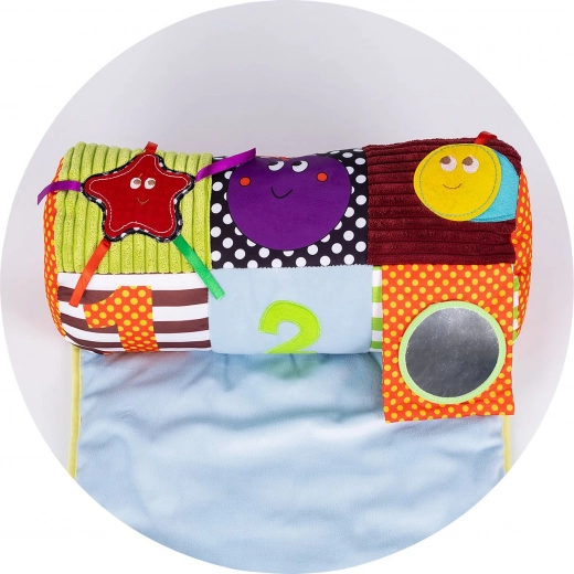 Kontrastné farby, textúry a drobné hračky podporujú rozvoj zraku, hmatu a koordinácie. Vďaka nízkej hmotnosti je set ideálny na doma aj na cesty – vždy pripravený na bezpečnú hru a relax.