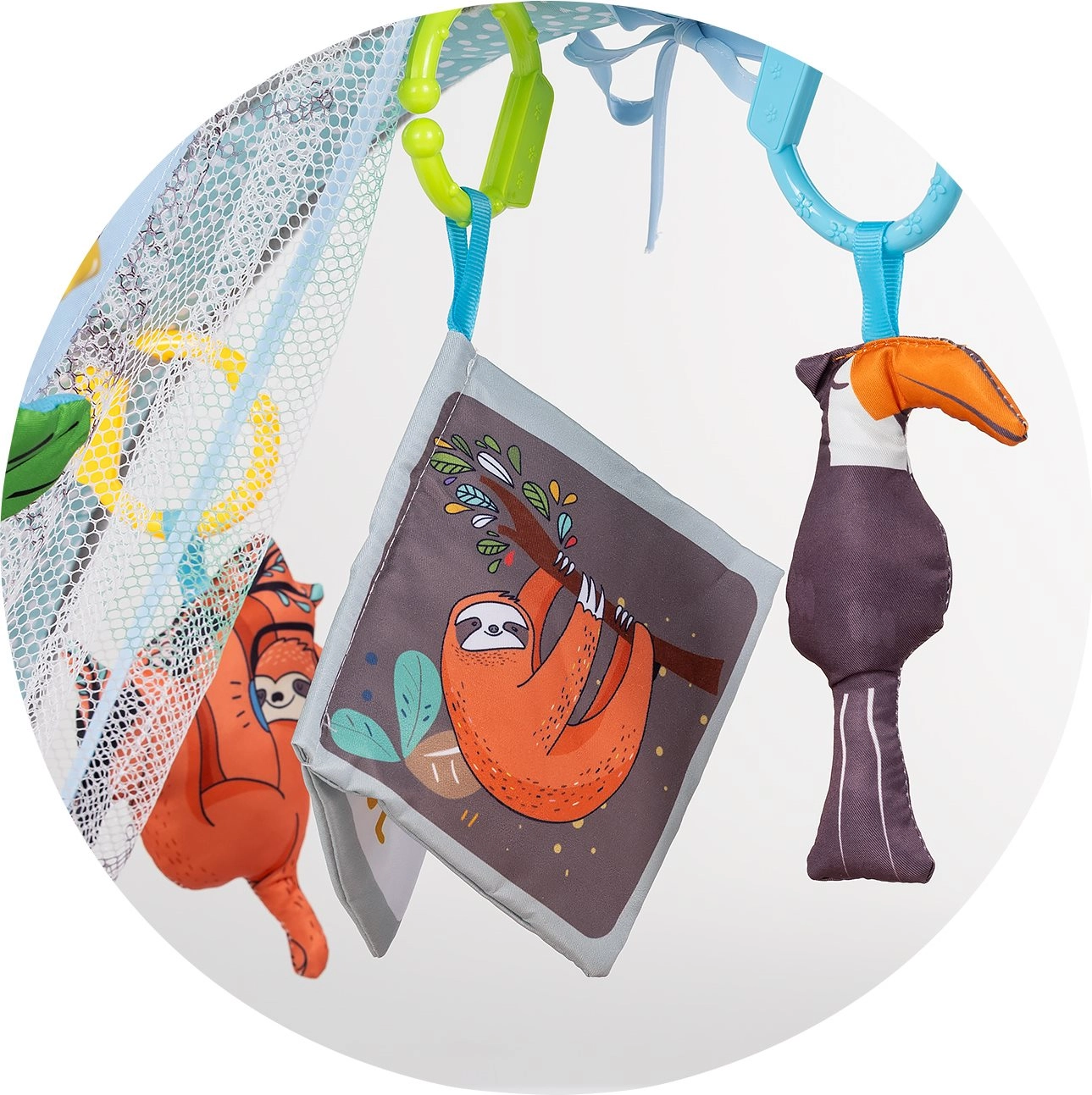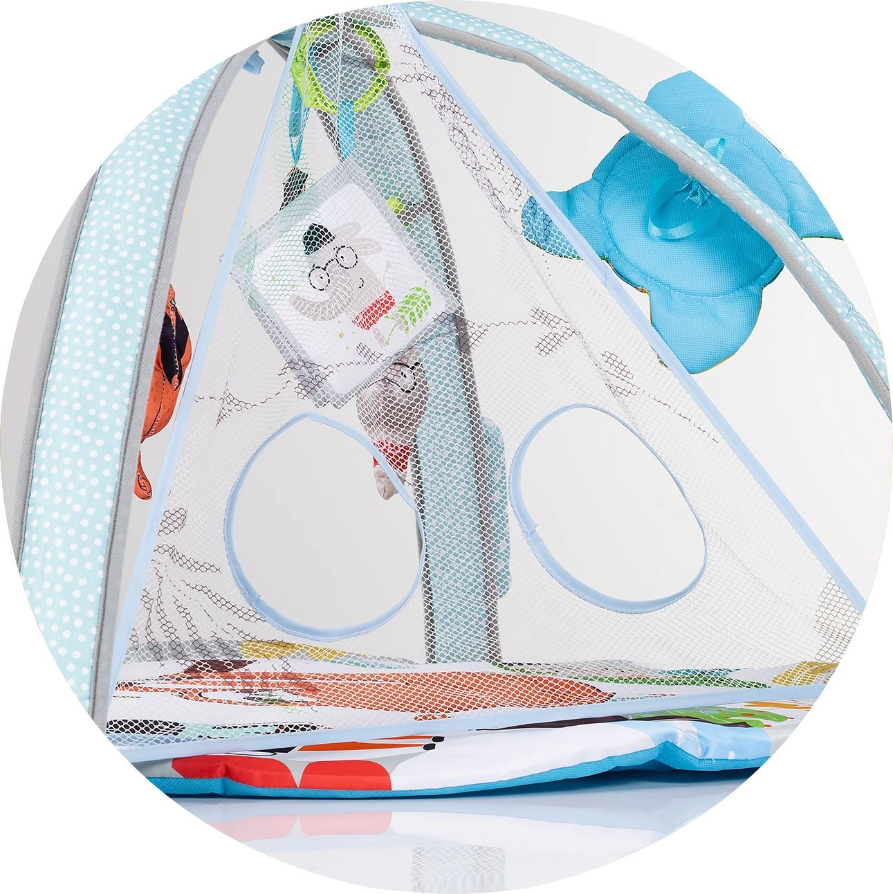 Závesné hračky, zrkadielko a zvukové i svetelné efekty podporujú zrak, sluch a zvedavosť a motivujú bábätko k pohybu a naťahovaniu.