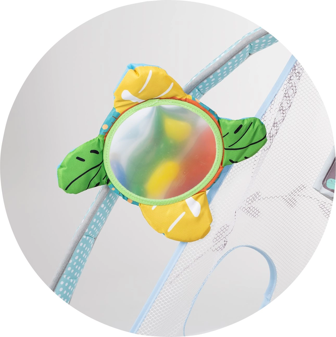 Polstrovaná podložka s bočnými okrajmi a sieťovinou udrží loptičky na mieste a poskytne bábätku mäkké a bezpečné prostredie na hranie.