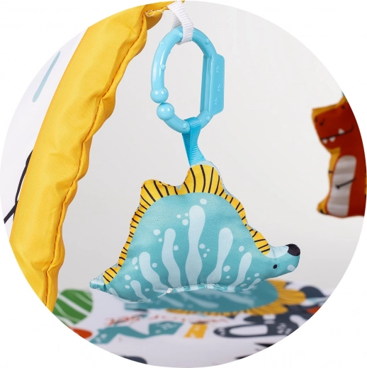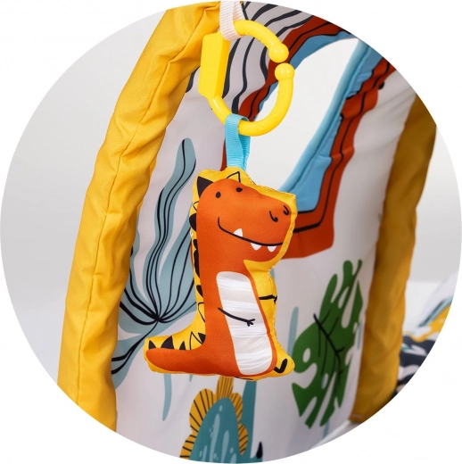 Polstrovaná podložka s oblúkom a zavesenými hračkami motivuje bábätko k uchopovaniu a posilňuje koordináciu ruka–oko.