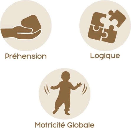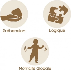 Deti si zamilujú pestrofarebné prvky: korálkové bludisko, točiace ozubené kolieska, guľôčkovú vežu a vkladačku tvarov. Každá aktivita je navrhnutá tak, aby podporovala motorický vývoj, trpezlivosť a objavovanie príčiny a následku.