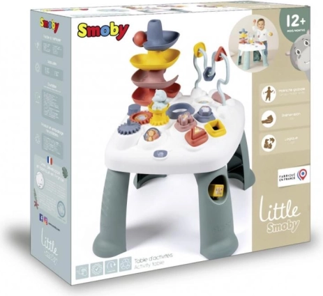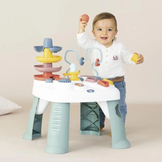 Hrací stolík LITTLE SMOBY Activity je navrhnutý pre zvedavé batoľatá od 12 mesiacov. Pevná konštrukcia a stabilné nohy podporujú bezpečnú hru, zatiaľ čo rozmanité aktivity – od vkladania tvarov po spúšťanie guľôčky z veže – stimulujú zmysly a zlepšujú sústredenie. Ideálne do detskej izby aj herne.