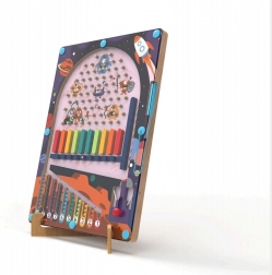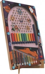 Táto originálna drevená hra s vesmírnym dizajnom spája akčnú zábavu pinballu s múdrym bodovaním pomocou magnetických guličiek. Pomocou vystreľovača sa deti snažia trafiť vybrané polia, sledovať skóre a zlepšovať svoj odhad a presnosť. Prehľadné usporiadanie hracej plochy uľahčuje vyhodnotenie výsledkov a motivuje k ďalším pokusom.