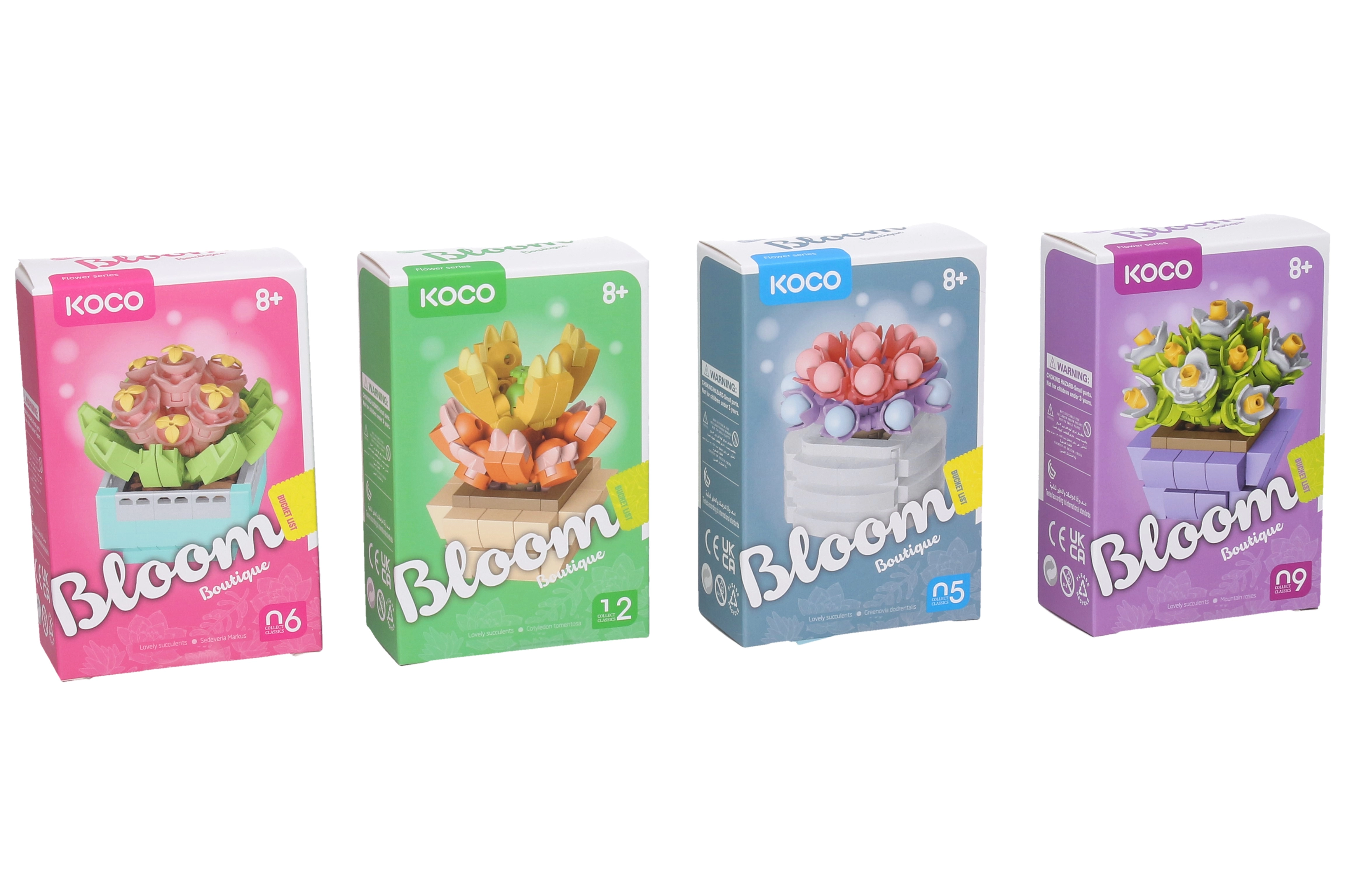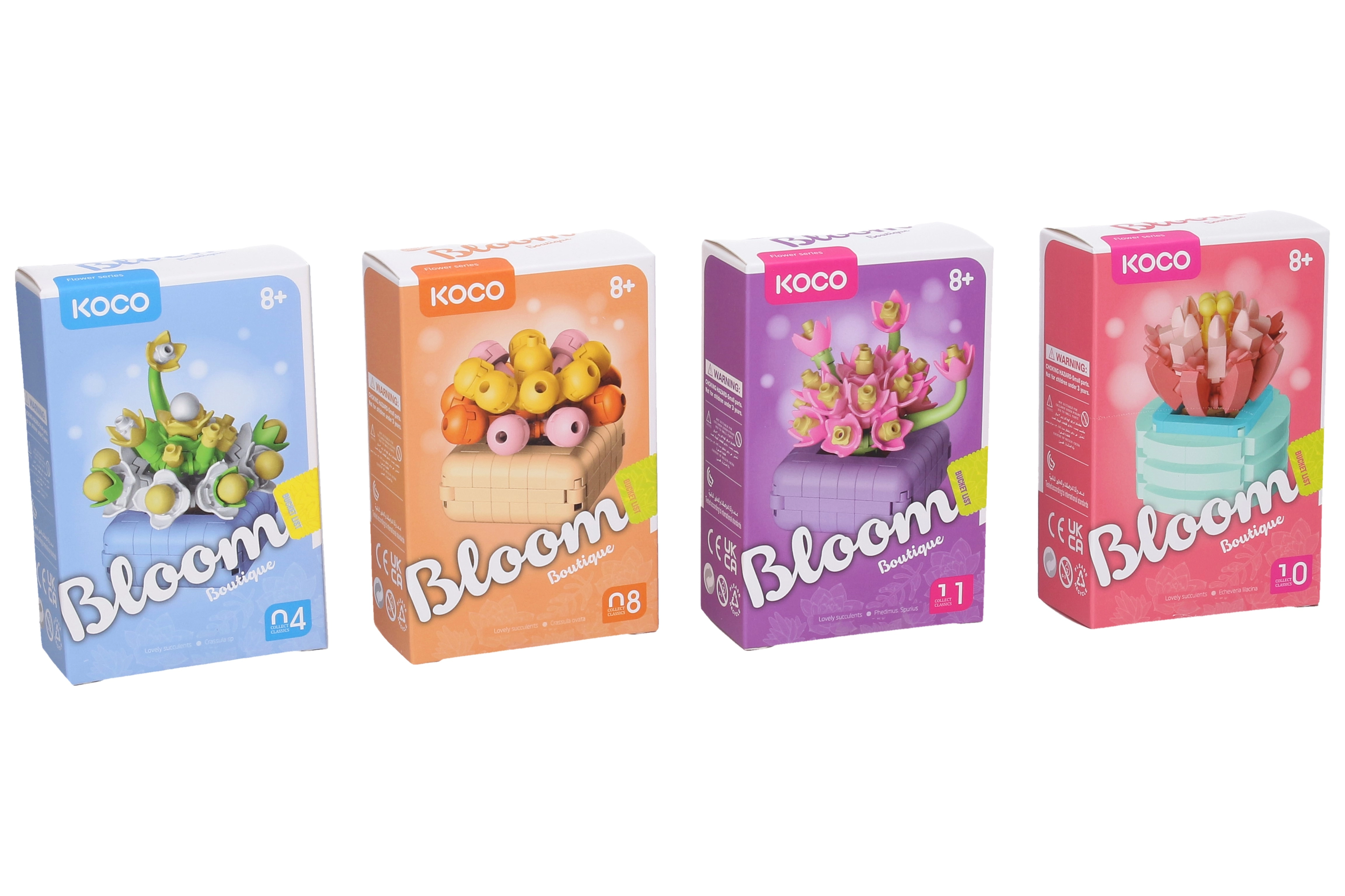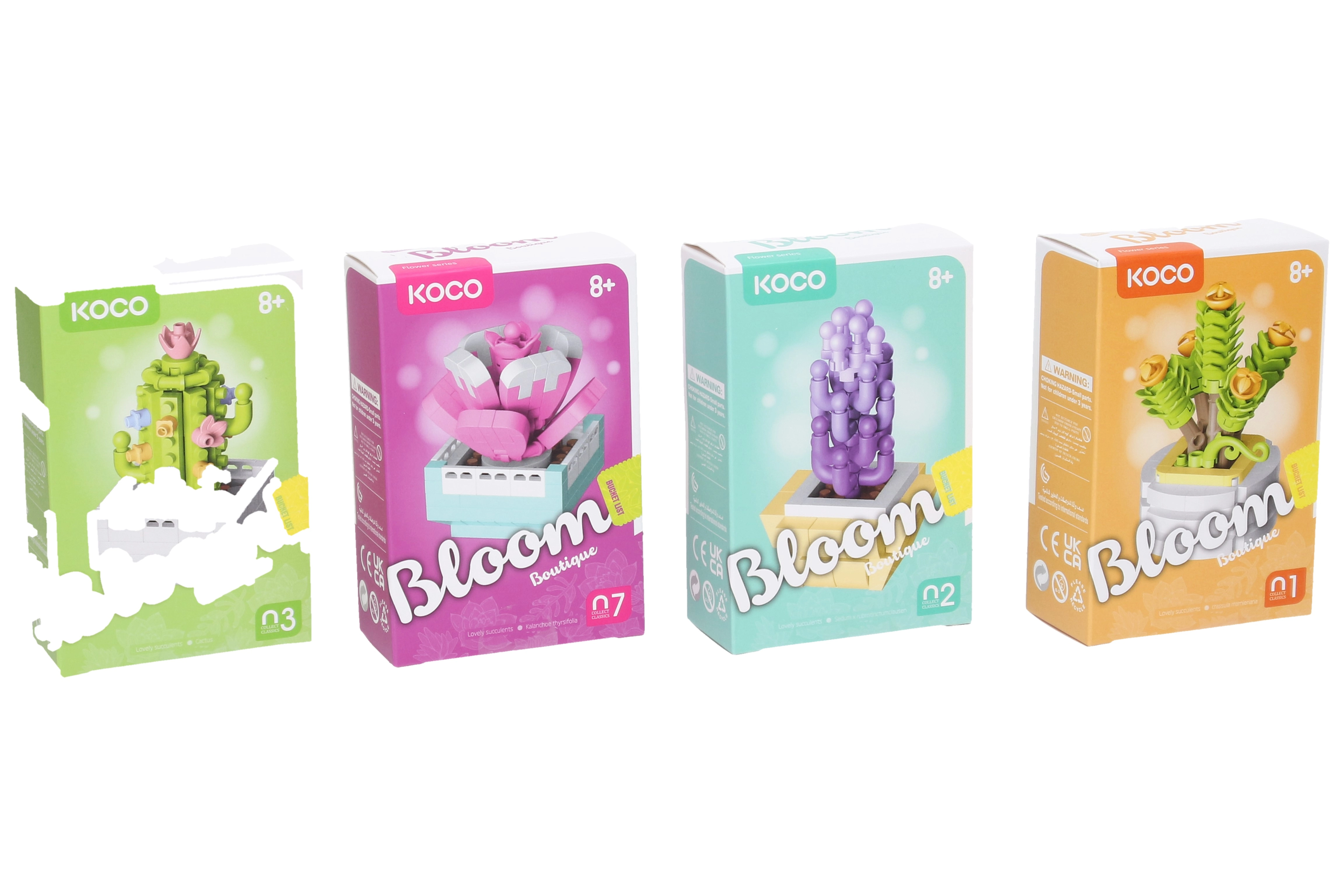 KOCO mini stavebnice rastlín prinášajú zábavu aj relax v jednom. Každý set umožní postaviť roztomilú rastlinku alebo kvet v mini kvetináči, ktorá sa skvele hodí ako dekorácia do detskej izby, kancelárie alebo obývačky. Vďaka prehľadnému obrázkovému návodu a nástroju na oddelenie kociek zvládnu skladanie aj začiatočníci.