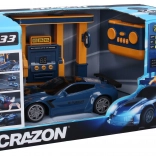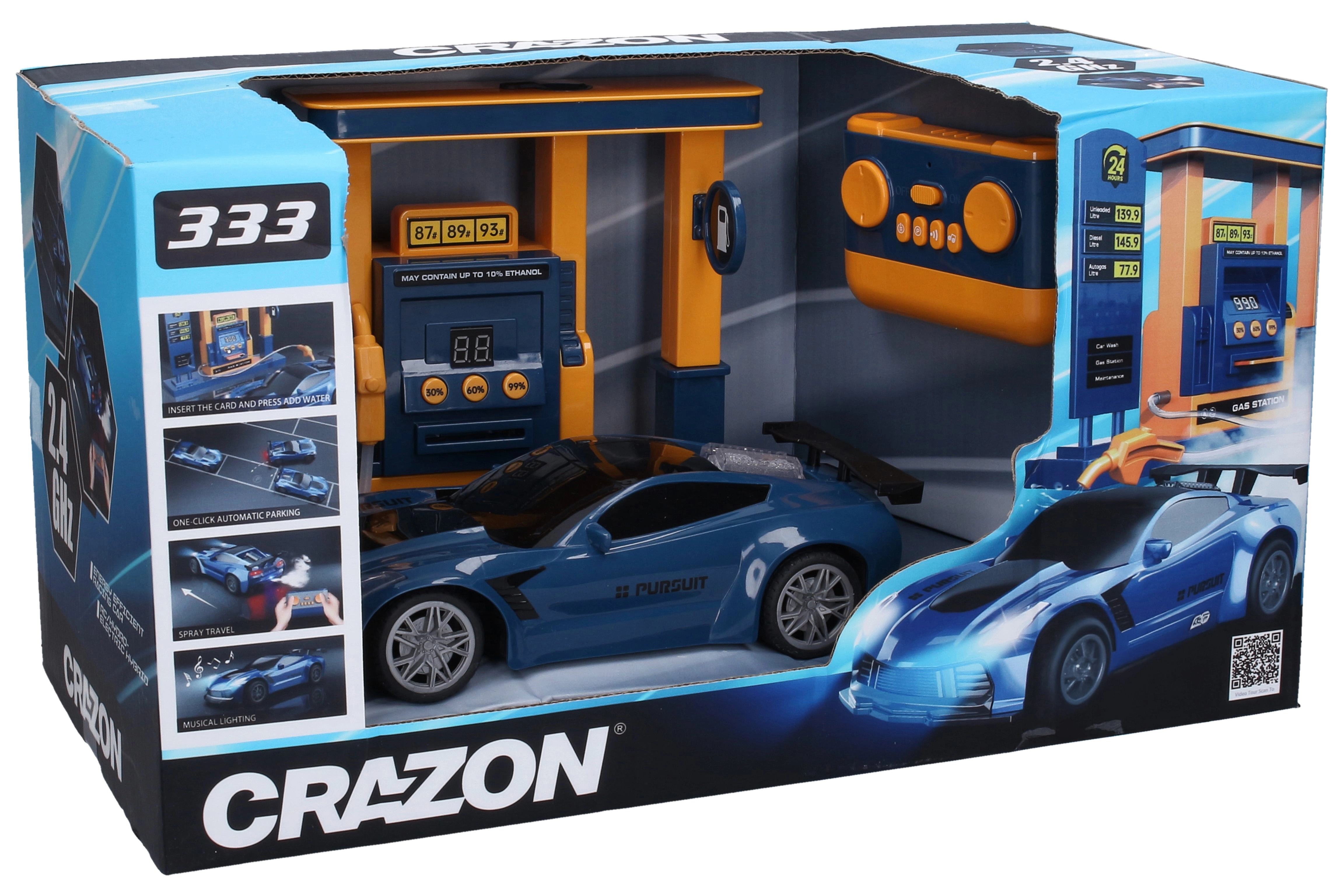 Na ovládači máte k dispozícii prepínač ON/OFF, tlačidlá pre svetelné a dymové efekty, automatické parkovanie a zvukové efekty. Čerpacia stanica funguje ako nádrž na vodu a pomocou „pištole“ (hadice) doplníte vodu do auta. Na čerpanie jednoducho vložte kartu do stanice a dlhým stlačením jedného z tlačidiel 30 % / 60 % / 90 % vykonáte naplnenie.