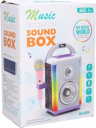 - Hudobný box, 1× mikrofón, popis funkcií na obale aj v balení