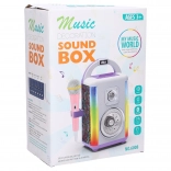 Užívajte si domáce karaoke aj zábavu na cestách s týmto prenosným hudobným boxom s výškou 28 cm. Ponúka bluetooth pripojenie, nahrávanie a zmenu hlasu, až 10 vstavaných pesničiek, päť svetelných módov a 4 úrovne hlasitosti. Nechýba AUX vstup, slúchadlový port, možnosť pripojenia 2 mikrofónov a praktický režim spánku po 5 minútach nečinnosti. V balení je 1 mikrofón.