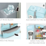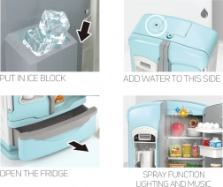 Táto detská chladnička je skvelým doplnkom do každej detskej kuchynky. Po naliatí vody do horného otvoru a otvorení dvierok vytvorí atraktívny hmlový efekt, ktorý spolu s LED osvetlením a zvukovými efektmi podporí fantáziu a zábavu pri hre na domácnosť.
