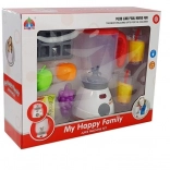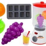 Tento realistický set obsahuje mixér s priehľadnou nádobou, vekom a praktickou rukoväťou, doplnený o hrozno, jablko a pomaranč, aby si deti mohli „namixovať“ vlastné ovocné koktaily. Svetelné a pohybové efekty dodajú hre na kuchyňu ešte viac zábavy.