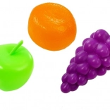 Súčasťou sú hrozno, jablko a pomaranč, dva kelímky s lyžičkami a tvorítko na ľad pre realistické smoothie scenáre.