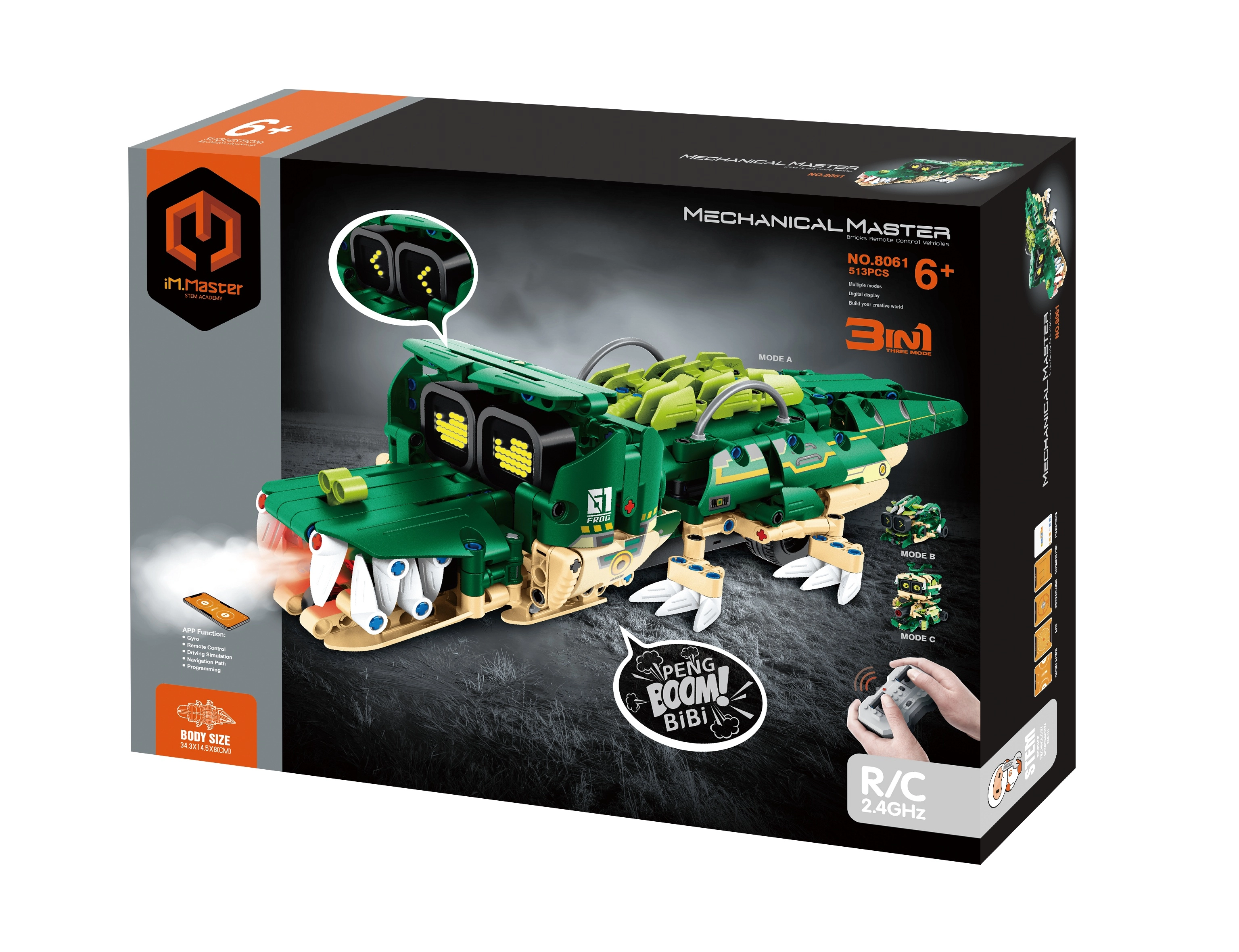 Objavte kreatívny svet robotiky so stavebnicou robotického krokodíla 3v1. Zostavte si hlavný model krokodíla alebo ďalšie varianty a ovládajte ich pohodlne pomocou RC diaľkového ovládača. Integrované svetelné efekty dodajú hre realistický nádych a väčšiu zábavu. Vďaka premyslenej konštrukcii je model stabilný a pripravený na hodiny zábavy.