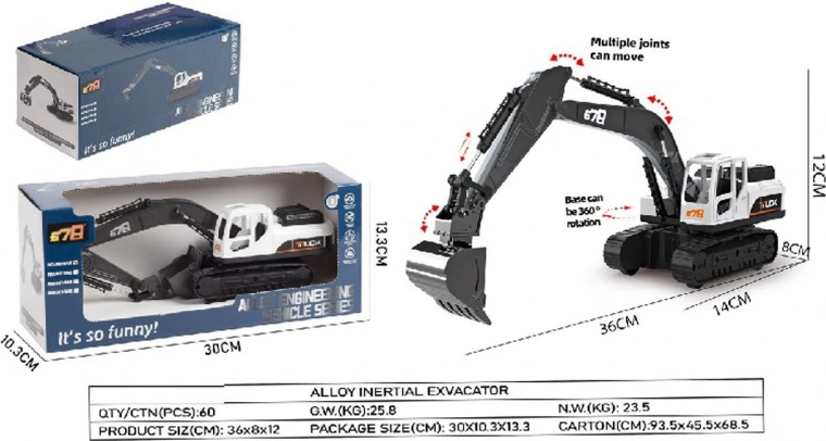 Tento detailne spracovaný bager kombinuje kovové prvky s kvalitným plastom pre dlhú životnosť a realistickú hru. Kabína sa otáča o 360°, rameno aj kovová lyžica sú plne pohyblivé, takže deti môžu ľahko naberať a presúvať materiál.