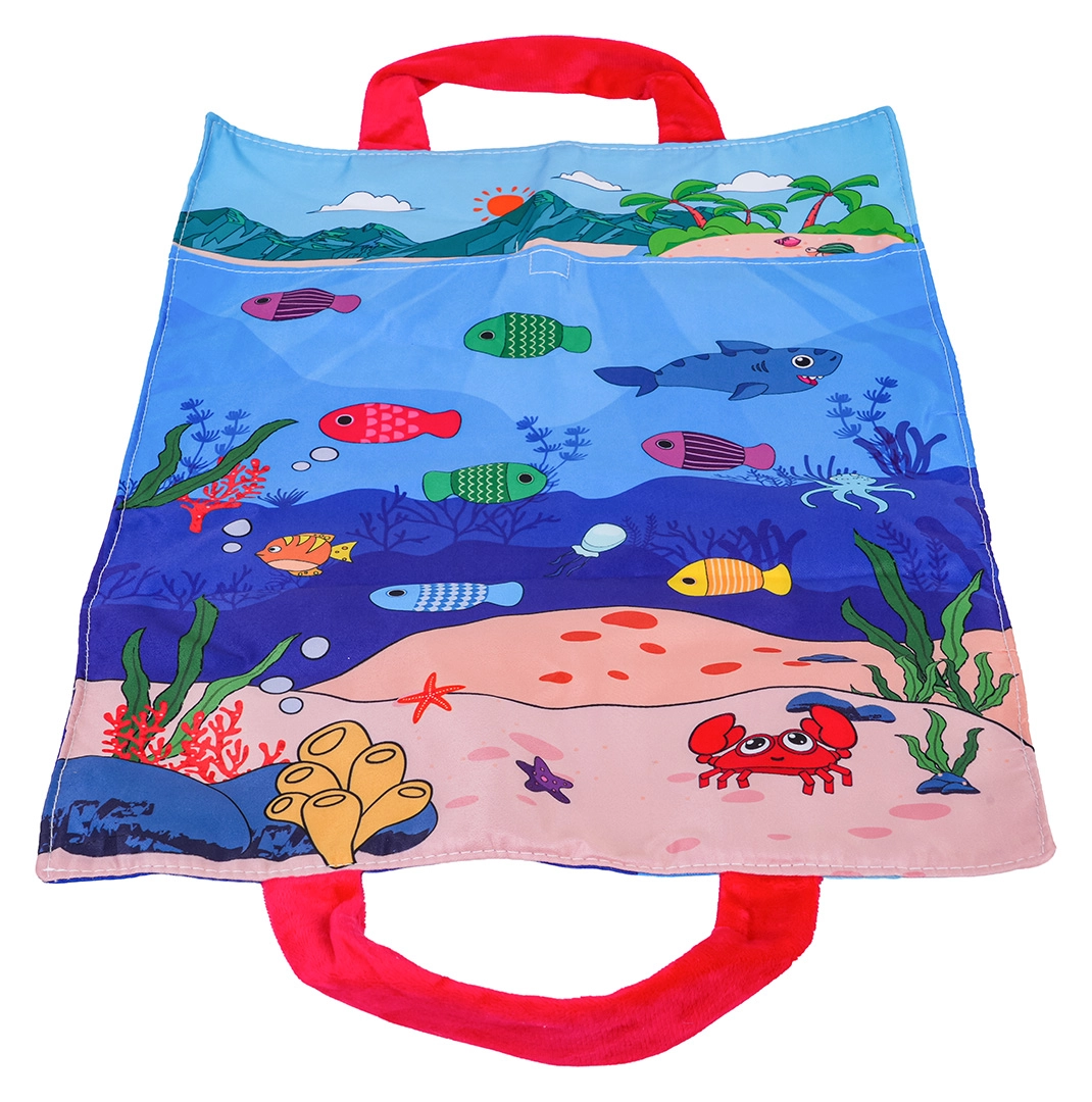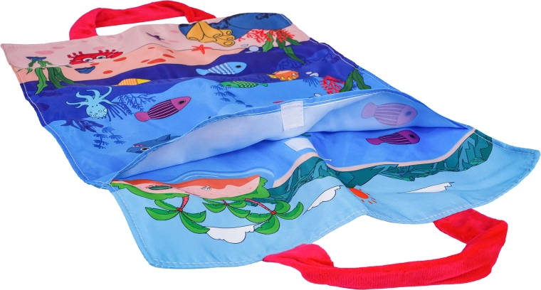Podložka s morským motívom má našité úchyty a možno ju použiť ako prenosnú tašku. Všetky diely ľahko zabalíte a vezmete na výlet či návštevu.