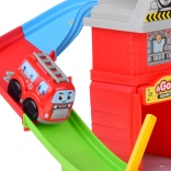 Farebná hasičská stanica s kľukatým/špirálovým zjazdom a hasičským autíčkom prináša deťom hodiny zábavy aj rozvoj zručností. Otváracie vráta, spúšťací prvok na streche, závora a semafor podporujú fantáziu, jemnú motoriku a chápanie príčina–následok.