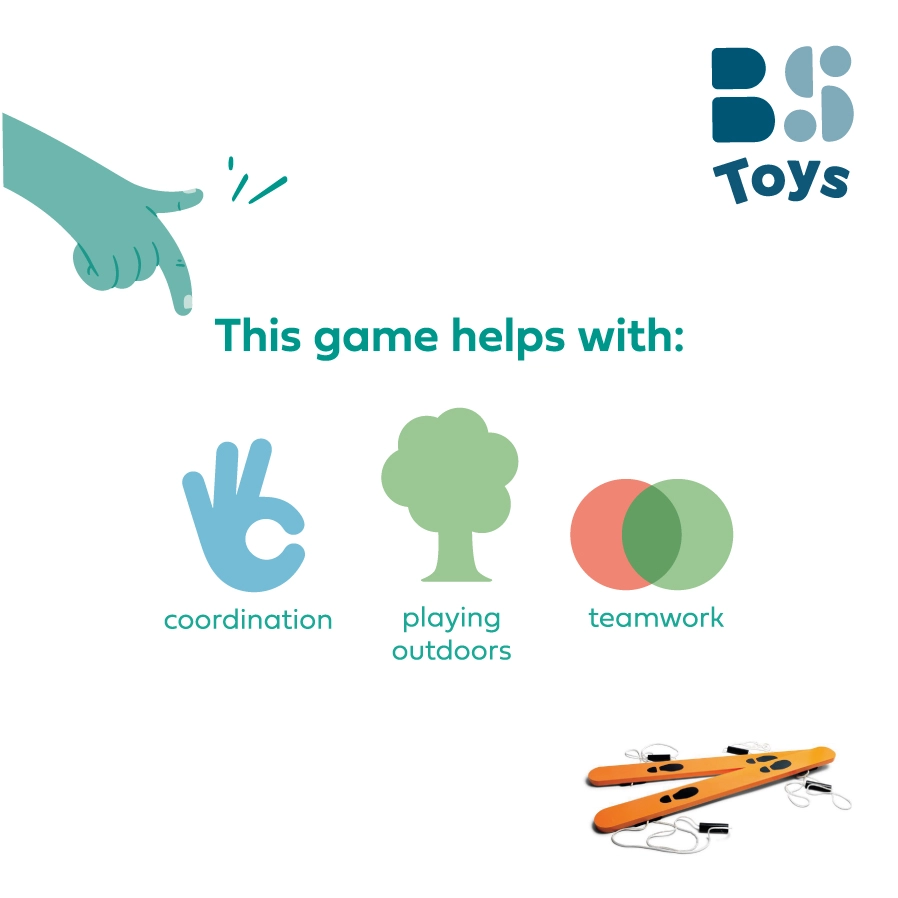 Drevené turistické lyže sú skvelou pomôckou na hry v dvojici. Deti sa učia zladiť kroky, držať rytmus a komunikovať, aby spoločne zvládli „bláznivú chôdzu“ bez pádu. Táto aktívna hra podporuje prirodzený pohyb, rozvíja motoriku a prináša veľa zábavy do škôl, družín, krúžkov aj na záhradu.