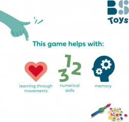 Zábavná a všestranná drevená hra pre deti od 4 rokov, ktorá kombinuje rozpoznávanie farieb, učenie čísel a pohybové výzvy. Otočte šípkou, vyberte farbu alebo číslo a plňte nápadité úlohy – od „nájdi zelený predmet“ po „skoč 10ד. Odolné drevené komponenty, 24 obojstranných žetónov a veľká točiaca šípka zaistia zábavu pre 2 a viac hráčov doma aj vonku.