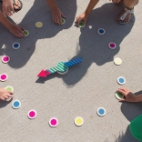 Táto jednoduchá, ale chytľavá vonkajšia hra podporuje kreativitu, tímovú spoluprácu a jemnú aj hrubú motoriku. Žetóny sú z jednej strany farebné a z druhej očíslované, takže ľahko striedate farebné výzvy aj číselné úlohy. Vďaka pevnému drevu z udržateľných zdrojov je hra odolná a vhodná na každodenné používanie.