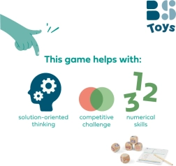 Hráči si precvičujú počítanie, rozpoznávanie vzorov a rozhodovanie pri voľbe najlepších kombinácií. Pevné drevené kocky a praktický blok s ceruzkou zaručujú, že hra je pripravená okamžite do akcie – doma, na chate aj na cestách.
