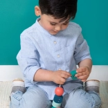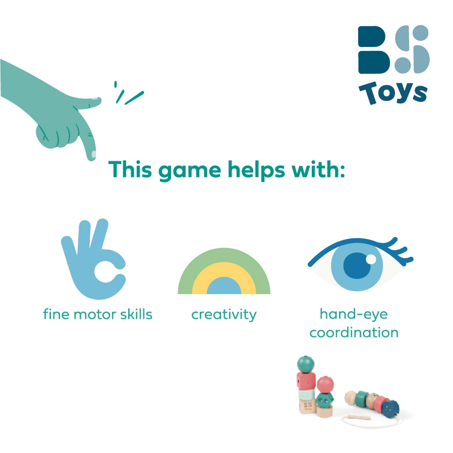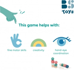 Objavte zábavnú motorickú hru, ktorá deti prirodzene vedie k tréningu obratnosti a trpezlivosti. Veľké drevené koráliky v rôznych tvaroch a farbách sa ľahko uchopujú a navliekajú na šnúrku s drevenými koncami. Táto aktivita podnecuje rozvoj jemnej motoriky, koordináciu ruka–oko aj farebné rozlišovanie.