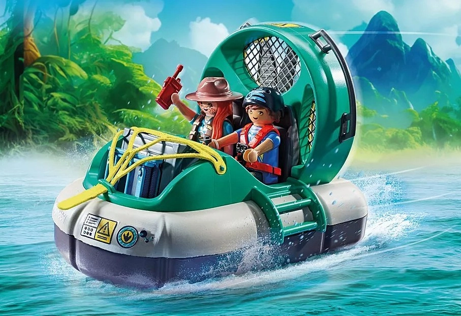 Vznášadlo pojme dve figúrky PLAYMOBIL a umožňuje realistický vodný prieskum aj rýchly presun za dinosaurami.