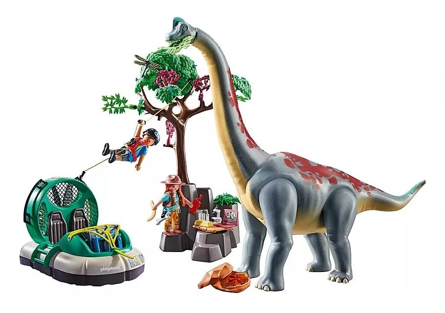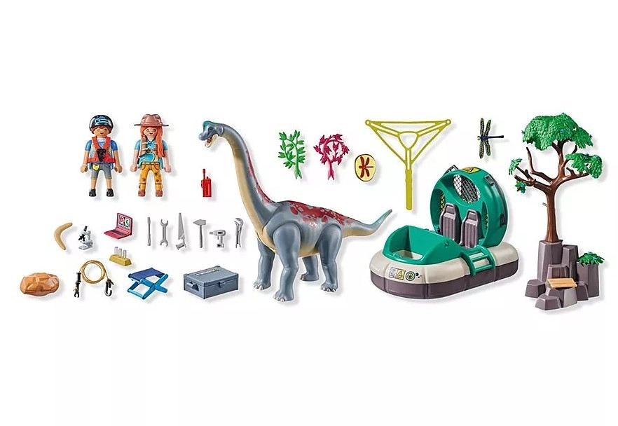 Brachiosaurus má pohyblivú čeľusť a realistické detaily, strom ponúka odnímateľné listy pre interaktívne kŕmenie. V sade nájdete aj „skryté poklady“, napríklad vážku uväznenú v jantári, nástroje, laná, siete a výskumné vybavenie vrátane notebooku na dokumentáciu správania.