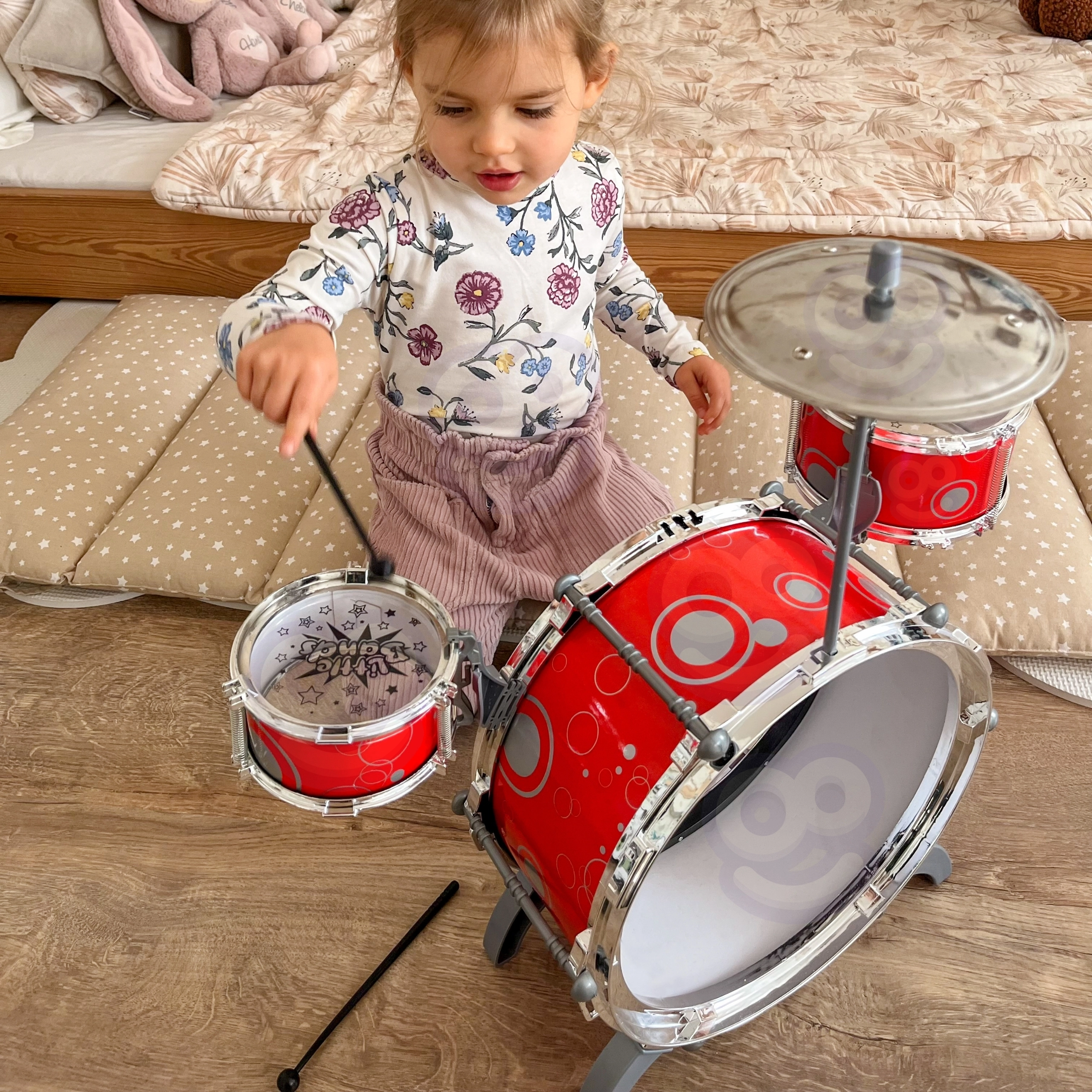 Detská bicia súprava WOOPIE prináša zábavnú a bezpečnú cestu, ako deti zoznámiť s hudbou. Kompaktný bicí set obsahuje centrálny bubon s pedálom, postranné tomy, činel a paličky – všetko navrhnuté pre malé ruky a pohodlné hranie. Vďaka jednoduchej montáži je pripravená na použitie behom chvíľky.