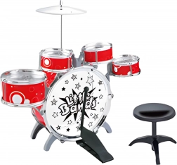 Súprava obsahuje spolu 7 prvkov a je ideálna na domáce hranie aj prvé „koncerty“. Rodičia ocenia rýchle zloženie a odolné materiály, deti zas atraktívny vzhľad s centrálnym bubnom a činelom.