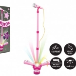 Detský karaoke mikrofón na stojane so svetlami a zvukom – Ružový