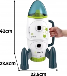 Raketa je vyrobená z odolného a bezpečného plastu ABS a má praktické madlo na jednoduché prenášanie. Otvárací kokpit a dvere sprístupňujú riadiacu miestnosť aj spodný hangár, takže si deti môžu vytvárať vlastné scenáre a rozvíjať kreativitu, koordináciu ruka–oko a motoriku. Hračka je vhodná do detskej izby, škôlky aj na cesty.