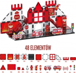 - 48 magnetických dielov vrátane panelov a prvkov s hasičským motívom