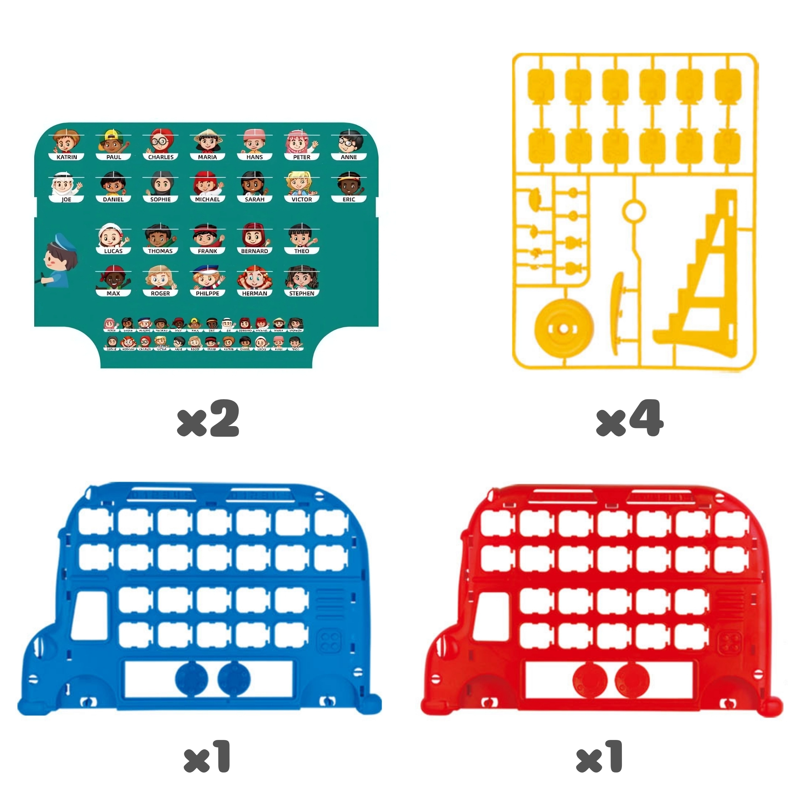 Čo nájdete v balení:- 2 herné tabule v tvare autobusu (modrá a červená)