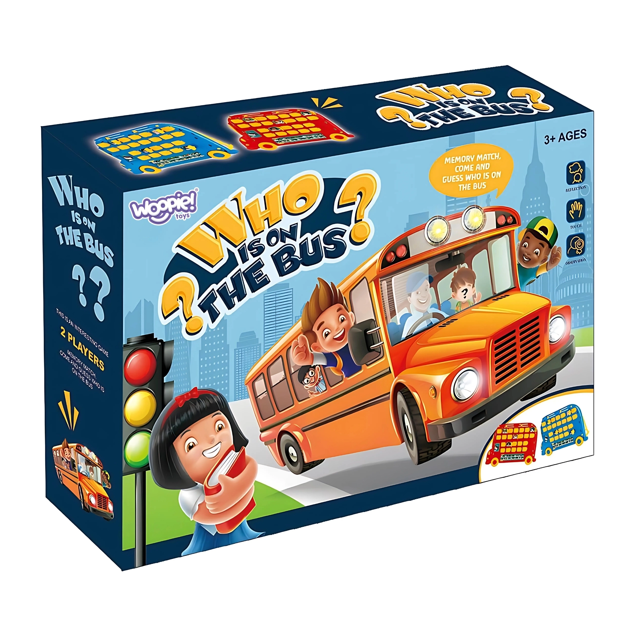 Rodinná hra Woopie Hádaj kto prináša obľúbený princíp „hádaj, kto to je“ v novom, atraktívnom prevedení s tabuľami v tvare školského autobusu. Deti aj dospelí si precvičia logické myslenie, pamäť a pozornosť aj komunikáciu. Hráči kladú chytré otázky a vylučujú postavy či zvieratá, až odhalia správnu kartu súpera. Jednoduchá mechanika bez batérií, odolné spracovanie a farebné ilustrácie zaručujú zábavu na dlhé hodiny doma aj na cestách.