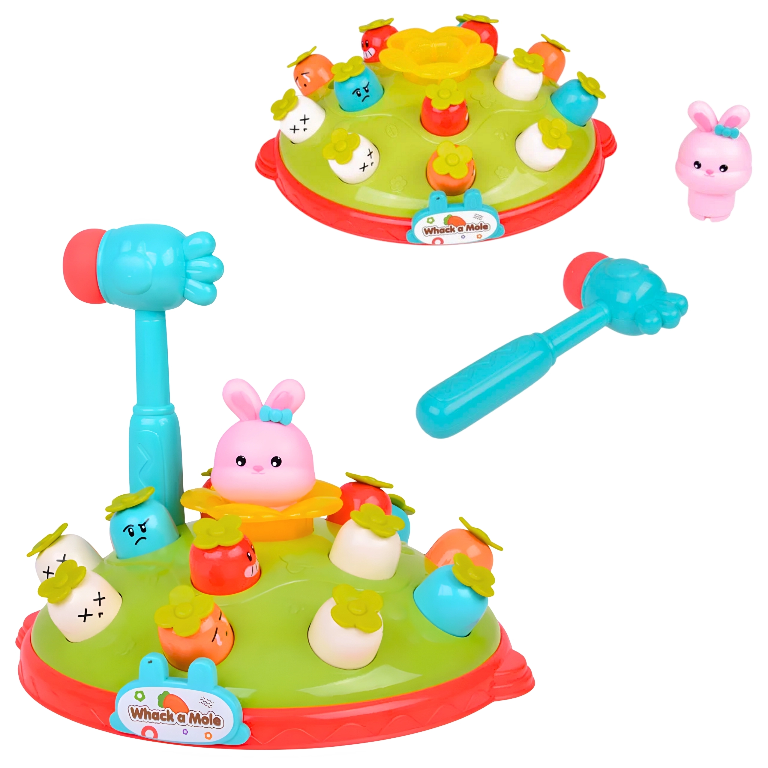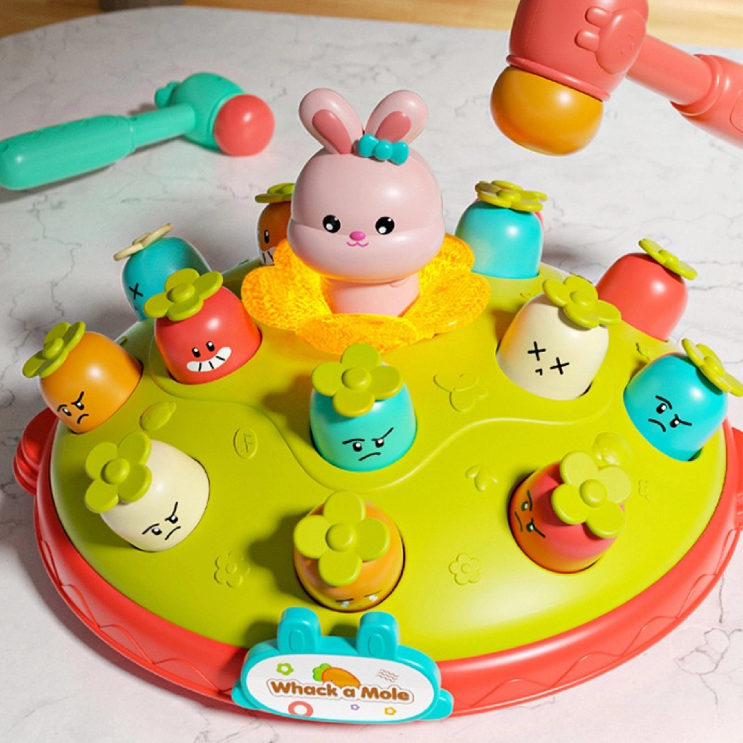 Bezpečné prevedenie s hladkými plochami a mäkkými kladivkami chráni malé pršteky, zatiaľ čo farebný dizajn so zajačikmi a rastlinkami podnecuje fantáziu a kreativitu. Hra vyžaduje batérie (nie sú súčasťou balenia), takže si ju môžete ľahko vziať kamkoľvek.