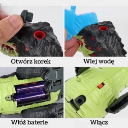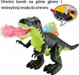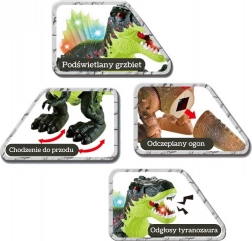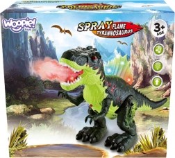 Spektakulárny interaktívny dinosaurus Tyrannosaurus Rex od značky Woopie ponúkne deťom jedinečné praveké dobrodružstvo. Vie kráčať vpred, má pohyblivú čeľusť, farebne podsvietený chrbát a vydáva autentické zvuky revu. Navyše efektne rozprašuje hmlu, ktorá imituje ohnivý plameň.