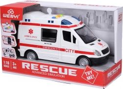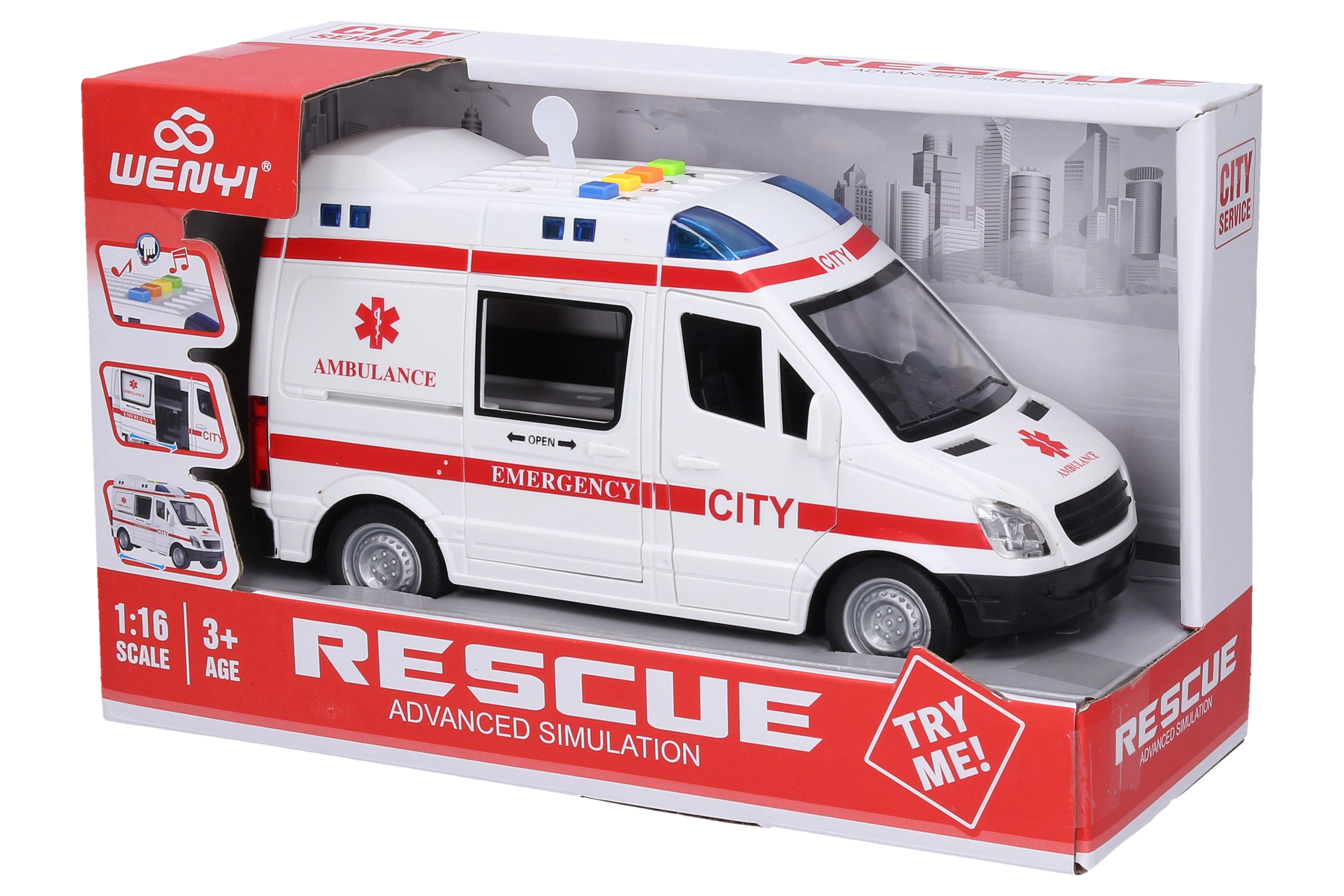 Táto detailne spracovaná auto sanitka poteší všetkých malých vodičov aj milovníkov záchranárov. Vďaka zotrvačníku ľahko vyrazí na zásah, svetlá a zvuky sa aktivujú tlačidlami na streche a otváracie dvere podporia realistické herné scenáre.