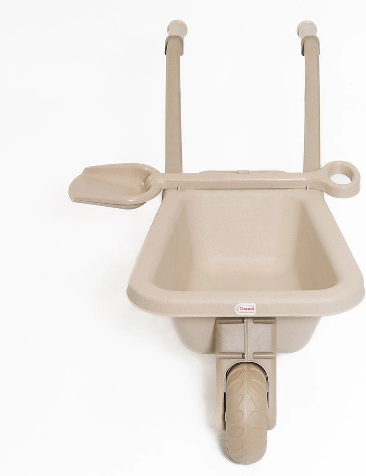 Hľadáte praktickú a zábavnú pomôcku pre malých záhradníkov? Detský fúrik DOLONI s lopatou v béžovej farbe je vyrobený z EKO surovín na báze pšeničnej slamy, ktoré pomáhajú znižovať uhlíkovú stopu. Vďaka ľahkej plastovej konštrukcii a prednému kolesu sa s fúrikom ľahko jazdí po piesku, tráve aj spevnenom povrchu.