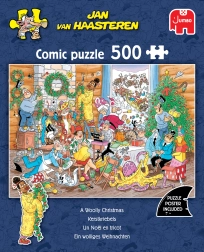 Objavte svet plný humoru a detailov s puzzle JUMBO od známeho ilustrátora JAN VAN HAASTEREN. Motív „Vlněné vianočné sviatky“ prináša sviatočnú atmosféru, veselý chaos a množstvo postavičiek a momentiek, ktoré vás pobavia pri každom skladaní. Vďaka kvalitnému spracovaniu a presným výsekom do seba dieliky perfektne zapadajú.