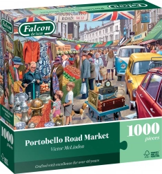 Objavte jedinečný humor a detailné ilustrácie od Jana van Haasterena na motíve rušného trhu v Portobelle. Každý pohľad odhalí nové vtipy, postavičky a typické „podpisy“ autora – od žraločej plutvy až po bláznivé situácie v dave. Puzzle z kolekcie FALCON/JUMBO vyniká precíznym spracovaním a príjemným materiálom pre pohodlné skladanie.