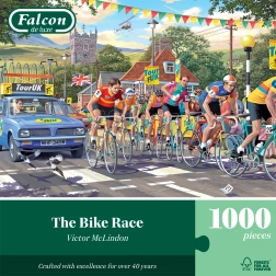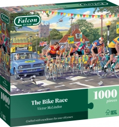 Užite si hodiny zábavy s legendárnym autorom JAN VAN HAASTEREN a jeho chaoticky vtipnou scénou zo sveta cyklistiky. Toto kvalitné puzzle FALCON s 1000 dielikmi ponúka detailné, farebné a humorné ilustrácie, v ktorých môžete hľadať ikonickú žraločiu plutvu, „bludné“ ruky a ďalšie typické motívy. Po poskladaní má puzzle rozmer cca 68 × 49 cm.