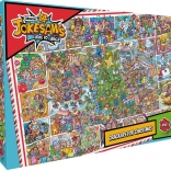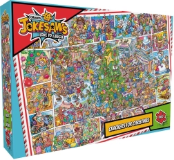 Vstúpte do sveta sviatočnej zábavy s puzzle GIBSONS Jokesaws: Crackers for Christmas. Tisíc precízne vyrezaných dielikov prináša detailnú ilustráciu s množstvom vianočných žartov, ktorá poteší zberateľov aj príležitostných skladateľov. Vďaka komfortnému formátu po zložení 68 × 49 cm sa skvele hodí na väčšinu stolov a podložiek.